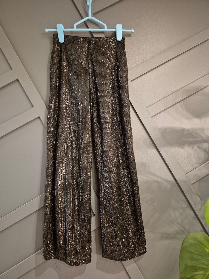 En excellent état Pantalon + haut manches courtes Idéal pour fête, mariage, baptême Marque : Kiabi Taille : 10 ans A sequins brillants