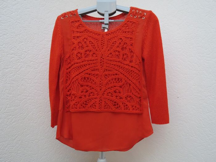 🧡pull bréal rouge corail crochet & maille bohème chic🧡 - photo numéro 1