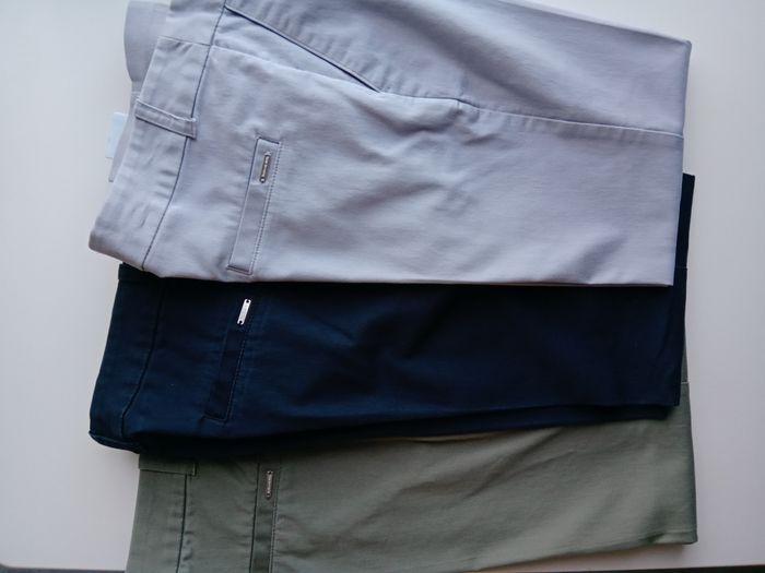 Pantalon coupe droite kaki, neuf, jamais porté, avec deux poches avant et 1 fausse poche arrière, joli tissu Je n'ai jamais pu le porté, je l'ai acheté juste avant d'être enceinte 😅 2 autres coloris sont également en vente, 10 € par pantalon