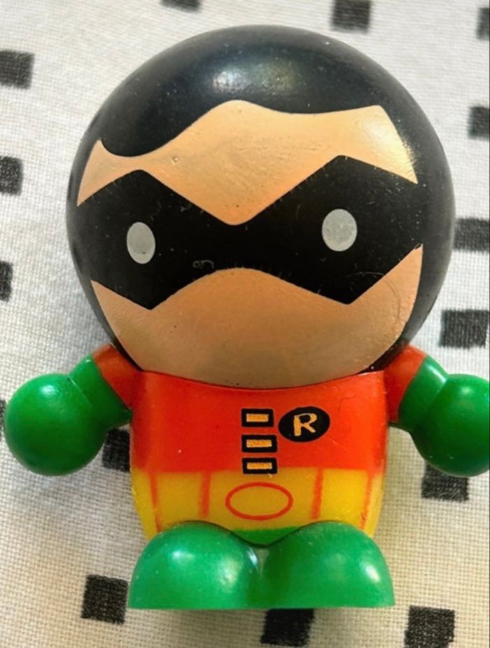 Je vends une figurine de Collection: « Robin » Interchangeable avec d'autres figurines - Marque: Supermarché Match KIPPII - Démentions: Hauteur 04 cm, Largeur 03 cm, Longueur 03 cm 1€