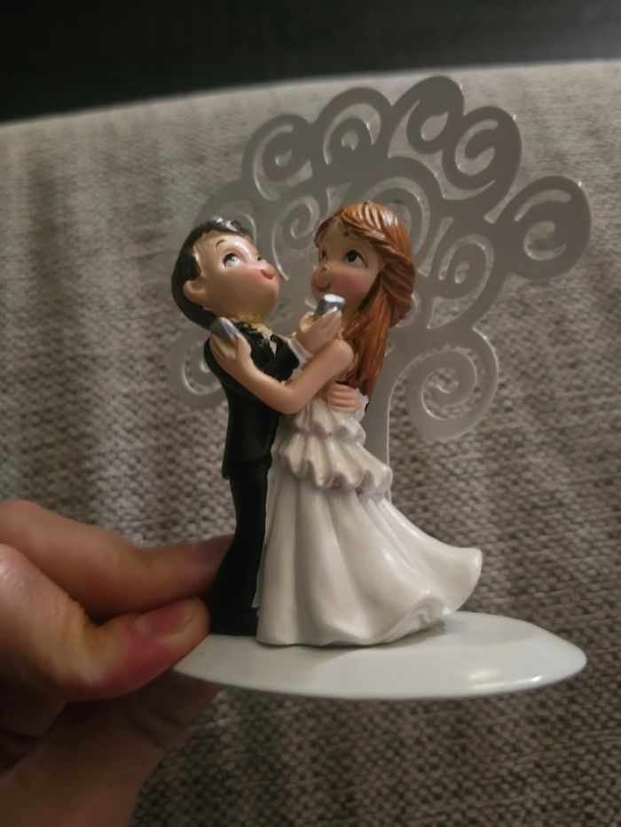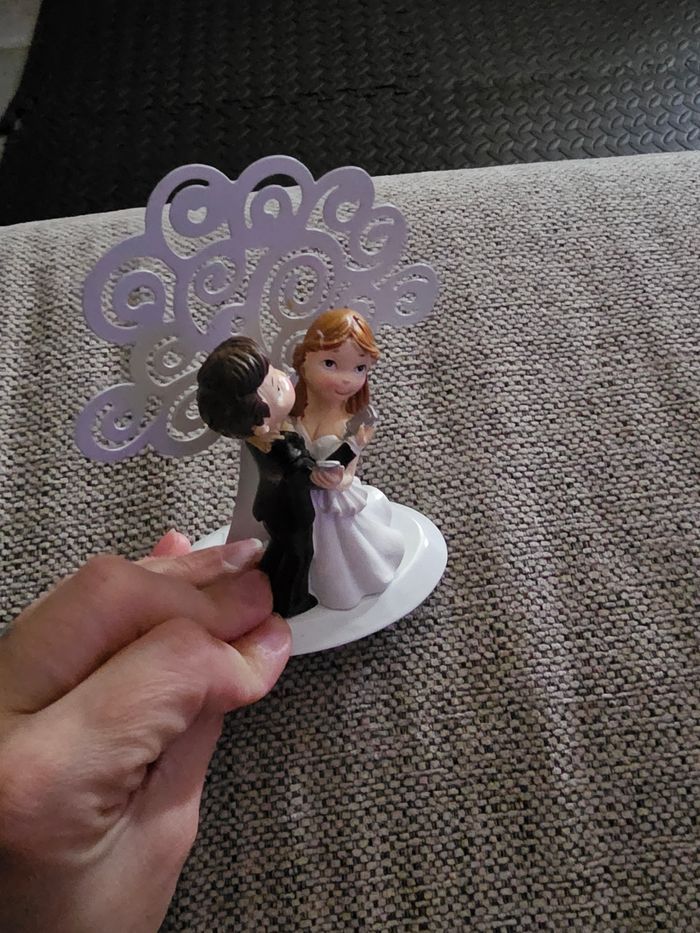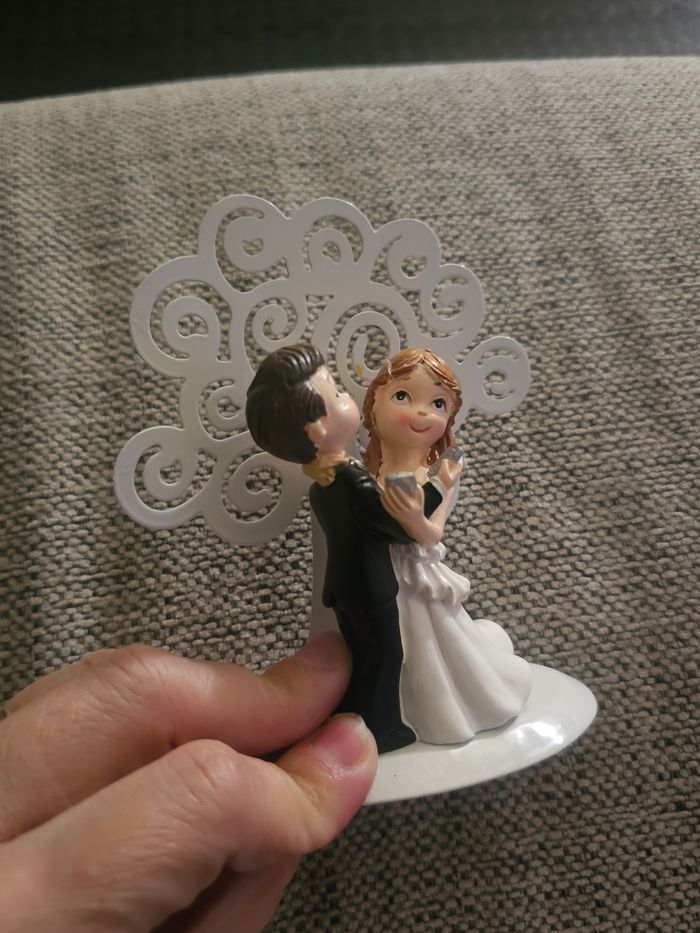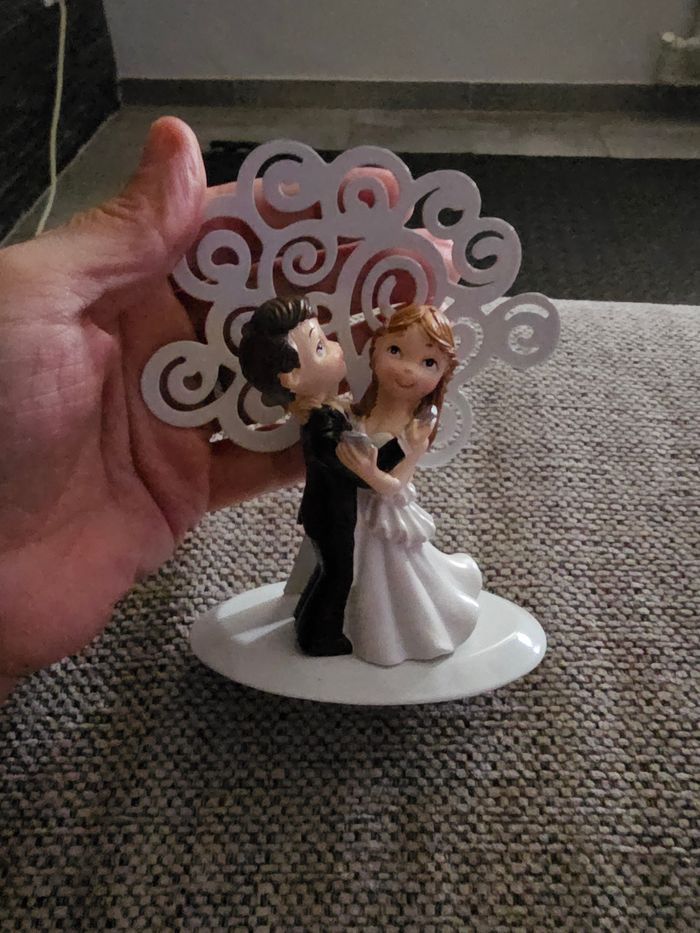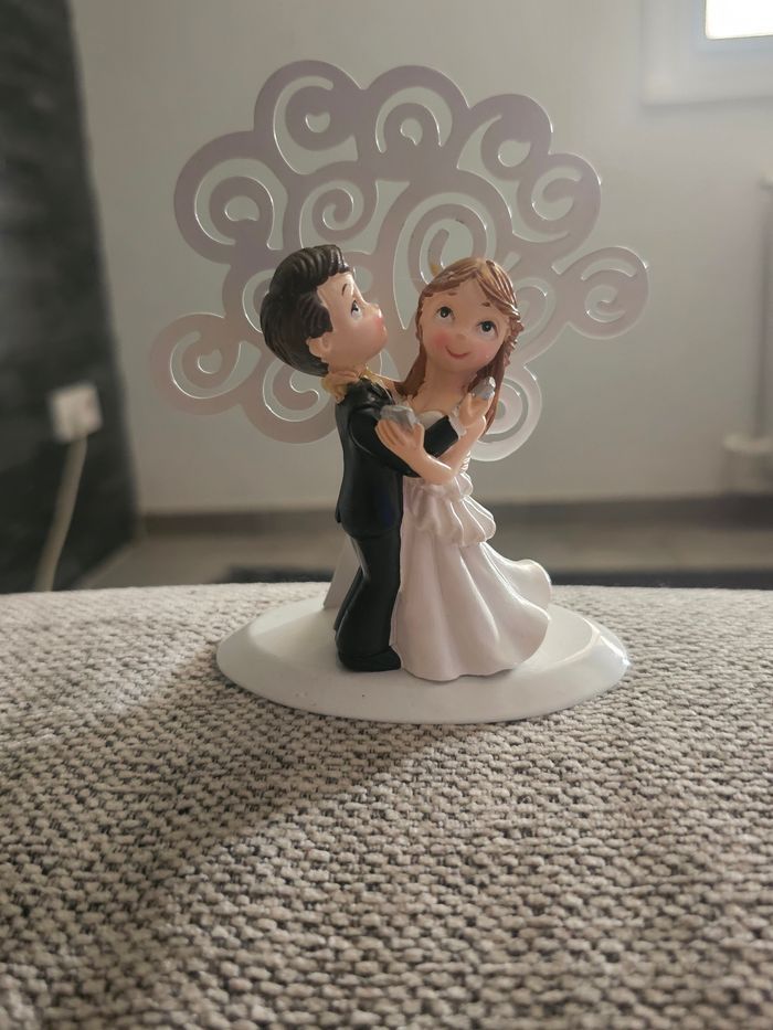 Figurine de mariés / couple de mariage idéale pour décoration de gâteau ou décoration de table. Représente un couple dansant, très mignon et romantique 💍 Socle blanc avec décor en arrière-plan. Très bon état. 📏 Convient parfaitement pour un wedding cake ou une déco de mariage 📦 Envoi rapide & soigné sous 48h (hors week-end → dépôt le lundi) 🏡 Maison propre, non fumeur, sans animaux..