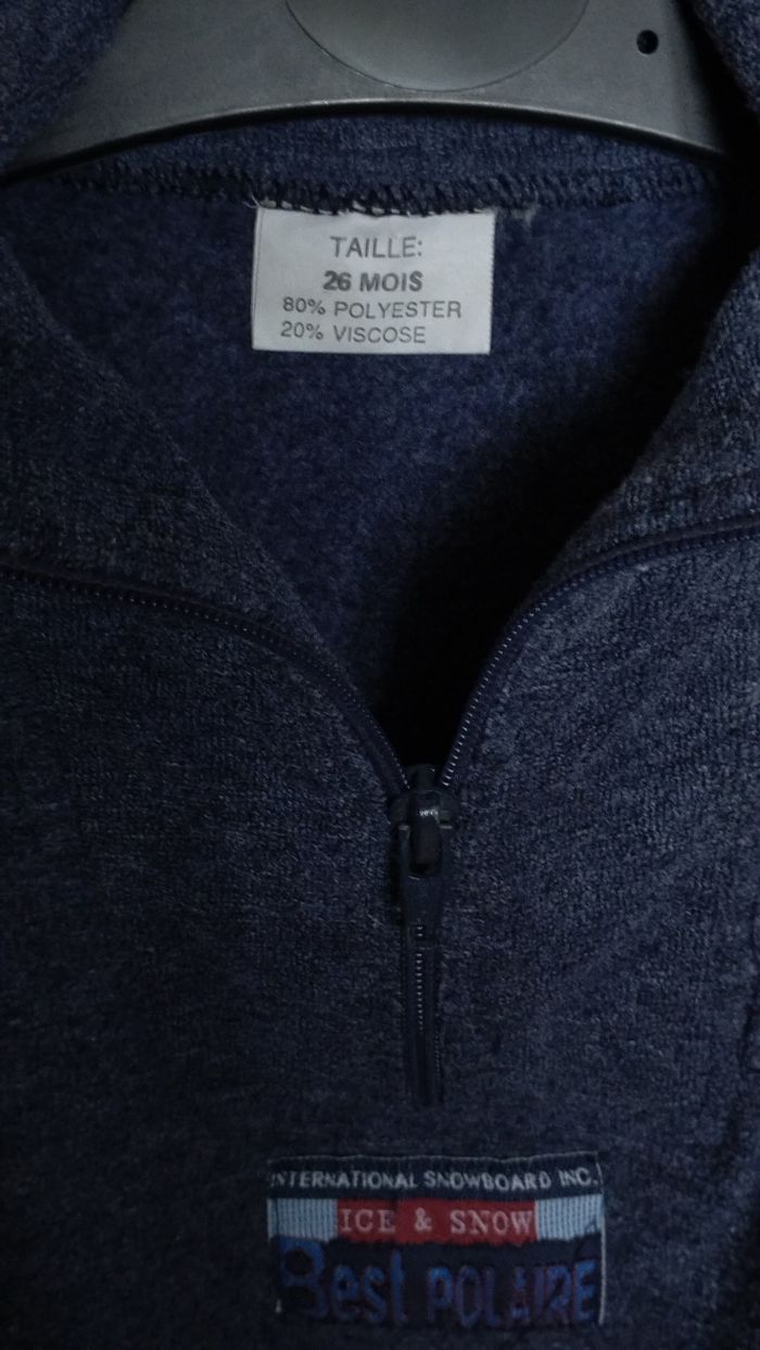 Pull polaire gris anthracite – 3 ans – col zippé - photo numéro 2