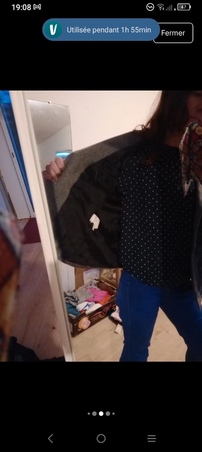Veste blazer 42 grise brodée c80 - photo numéro 4