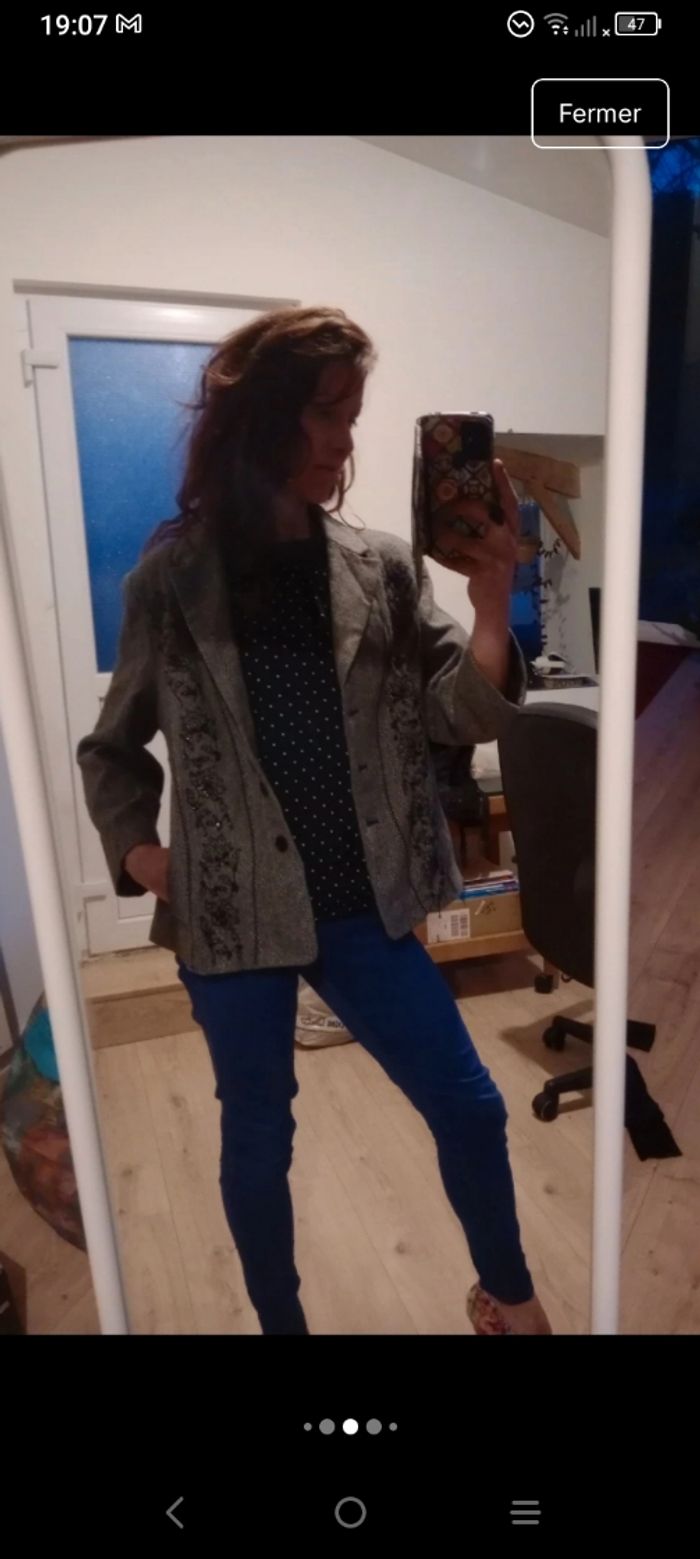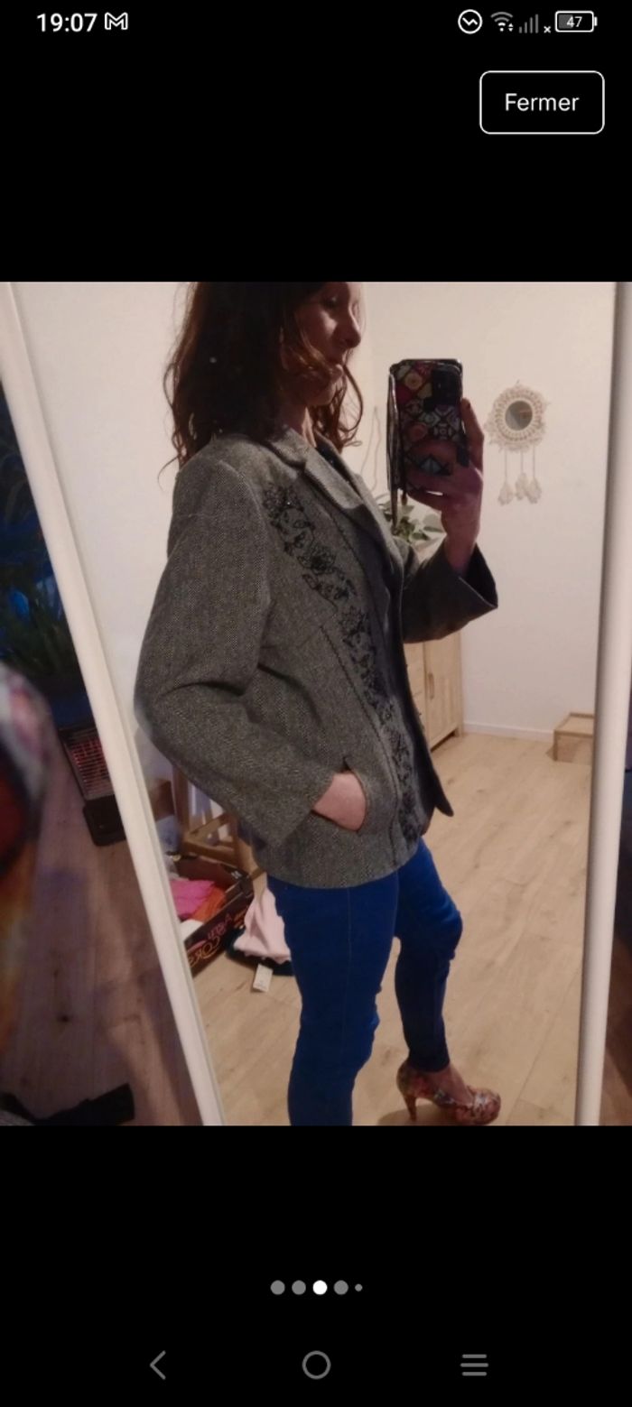 Veste blazer 42 grise brodée c80 - photo numéro 5