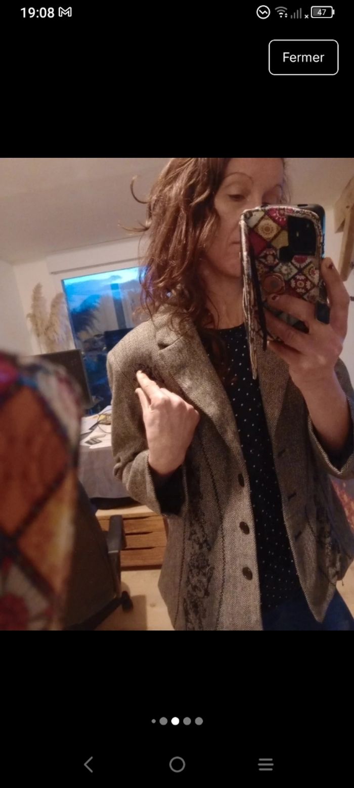 Veste blazer 42 grise brodée c80 - photo numéro 6