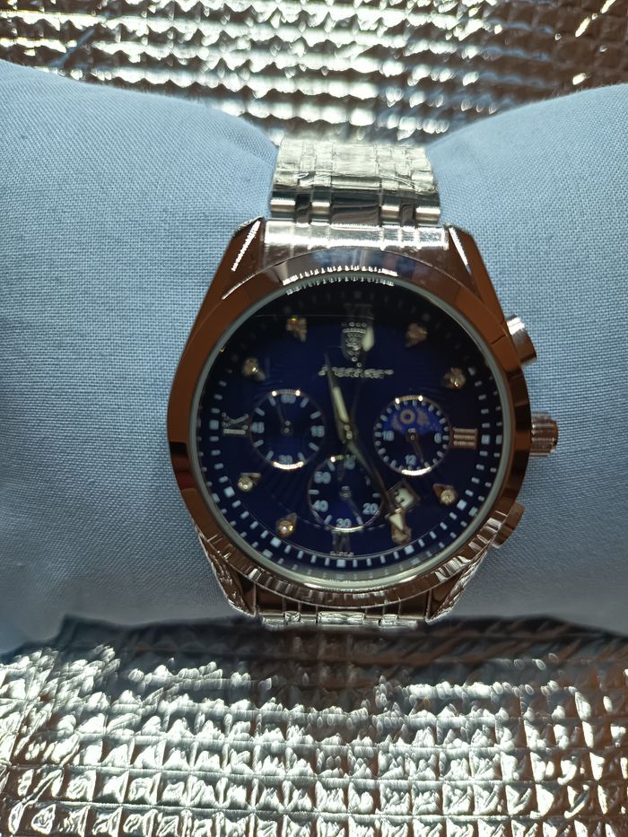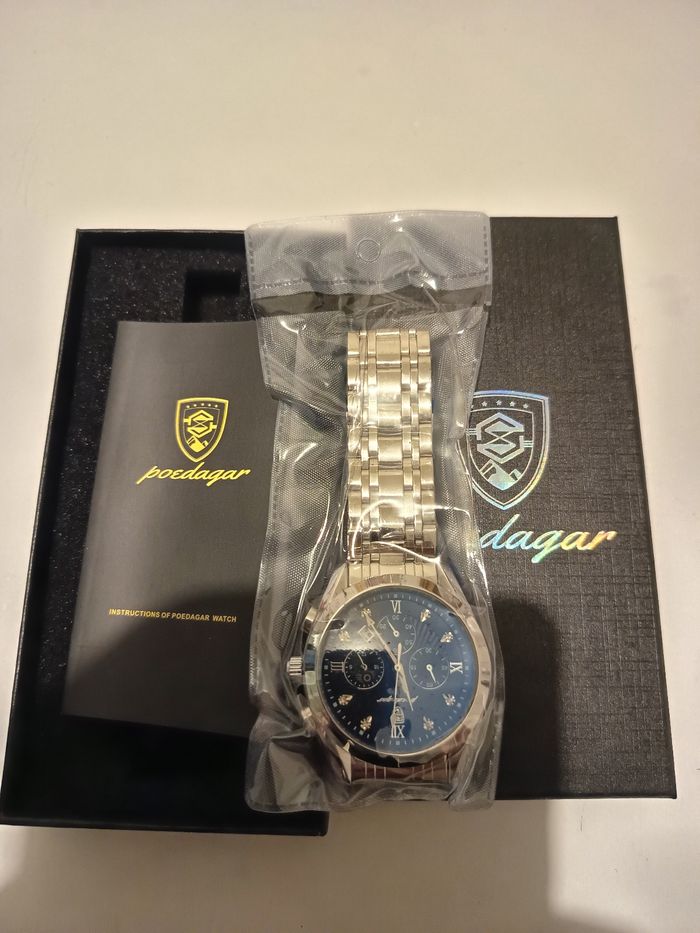 Montre Poedagar homme bracelet acier inoxydable fond bleu