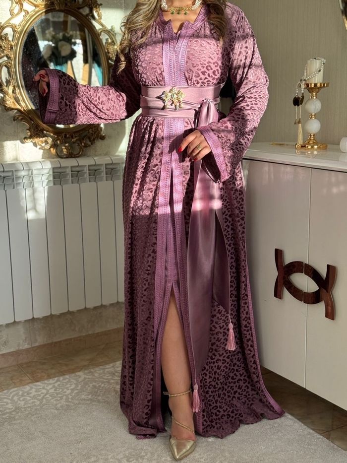 ✨Magnifique Caftan 3 pièces / Kimono Takchita Chic Violet ✨Sublime caftan collection 2026, moderne en satin violet, accompagné d'une sur-robe fluide, de bordures élégantes et d'une ceinture assortie à nouer à la taille. ✨Détails raffinés : finitions soignées, coupe fluide et féminine. Idéal pour un hlal, henné, une fête ou toute soirée élégante. 📏Taille : 38 ‼️Broche non incluse Envoi rapide et soigné