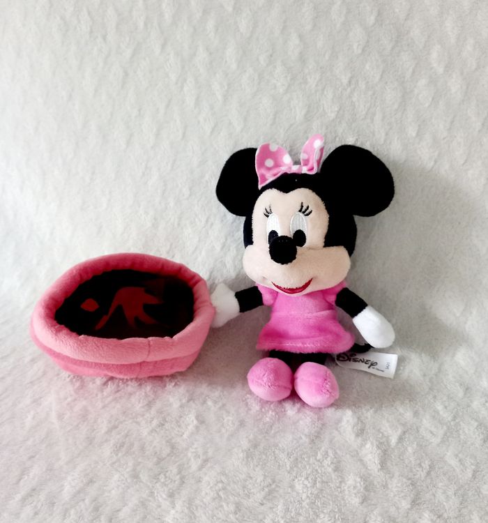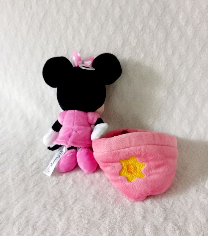 Doudou peluche Minnie avec son pot de fleur Disney robe rose 📭 Envoi rapide et soigné