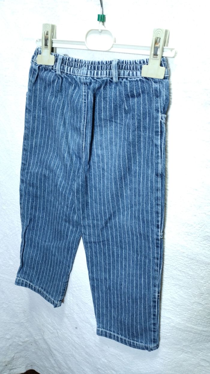 Jean rayé bleu – 3 ans – broderie enfant qui joue au ballon - photo numéro 2