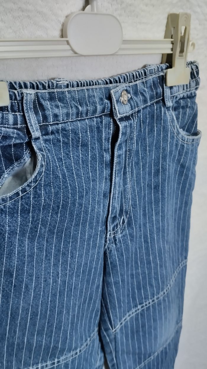 Jean rayé bleu – 3 ans – broderie enfant qui joue au ballon - photo numéro 5