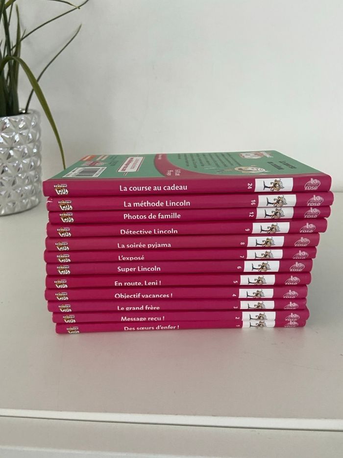 À vendre, une superbe collection de 12 volumes de la série culte "Bienvenue chez les Loud", parfaits pour les jeunes lecteurs (8-10 ans). Les livres sont issus de la collection Bibliothèque Rose. ✨ État des livres Les livres sont en excellent état : • Couvertures propres et non cornées. • Tranches impeccables (permettant de voir la numérotation sur l'étagère). • Intérieurs sains, sans écritures ni pages déchirées. 📖 Liste des titres inclus Le lot comprend les numéros suivants : 1. 1 - Des sœurs d'enfer ! 2. 2 - Message reçu ! 3. 3 - Le grand frère 4. 4 - Objectif vacances ! 5. 5 - En route, Leni ! 6. 6 - Super Lincoln 7. 7 - L'exposé 8. 8 - La soirée pyjama 9. 9 - Détective Lincoln 10. 12 - Photos de famille 11. 16 - La méthode Lincoln 12. 24 - La course au cadeau