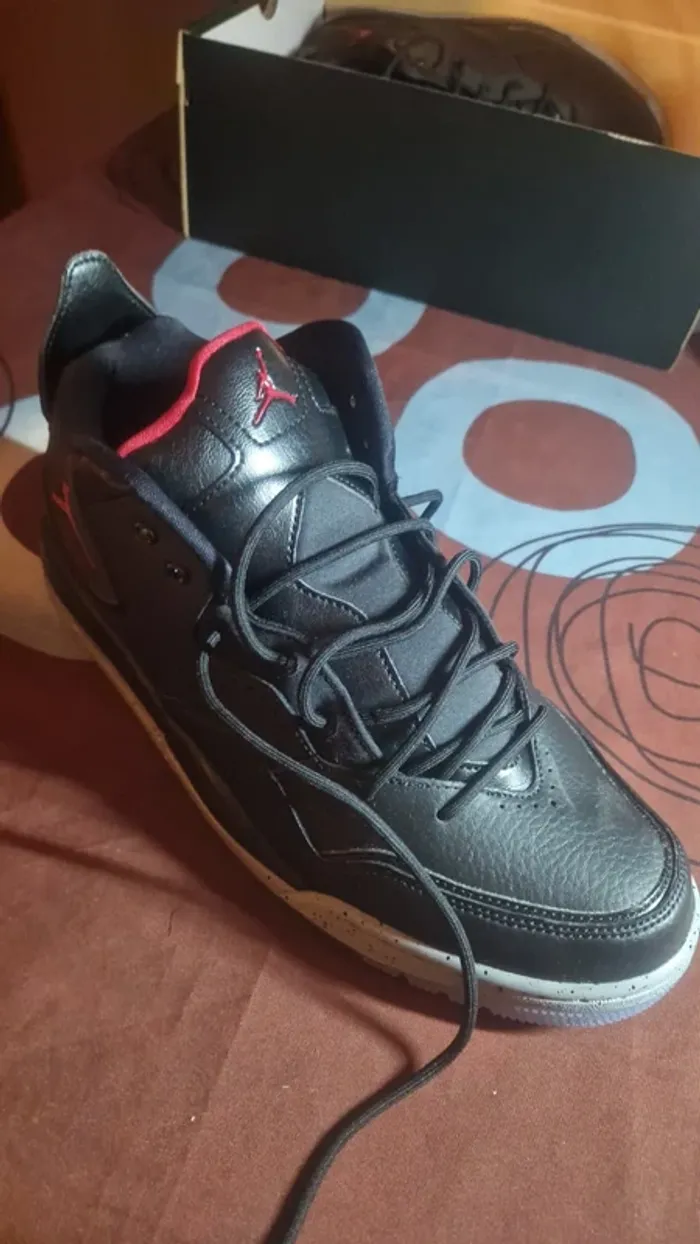 À vendre paire de Jordan Courtside 23 en excellent état. Pointure Coloris : noir, rouge et gris vendues avec la boîte d’origine. Marque : Jordan (Nike) Modèle : Courtside 23 État : neuf, Pointure : 45 Remise en mains propres Paris 14eme Prix : 60€ Pour toute question ou photo supplémentaire, n'hesitez pas a me contacte
