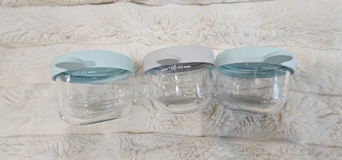 Lot de 3 pots en verre Béaba de 150ml. ☆ Graduations intactes. ☆ Très bon état.