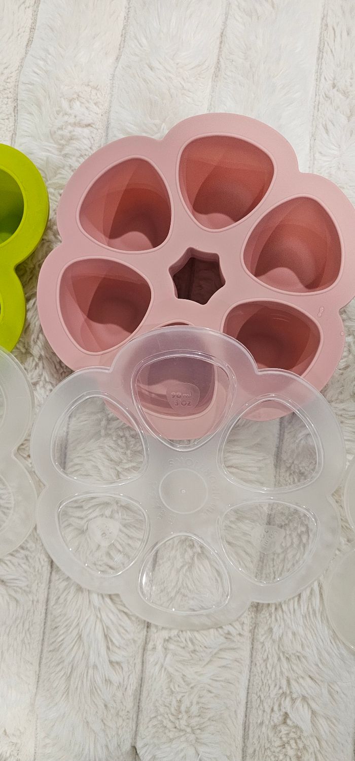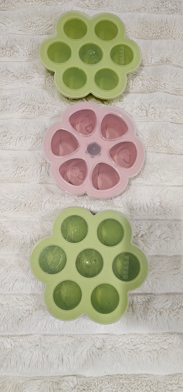 Lot de 3 fleurs 🌸 multiportions Béaba. ☆ 1 fleur 🌸 90ml vieux rose. ☆ 2 fleurs 🌸 60ml verte. Idéal pour la diversification alimentaire de bébé. Tres bon état.