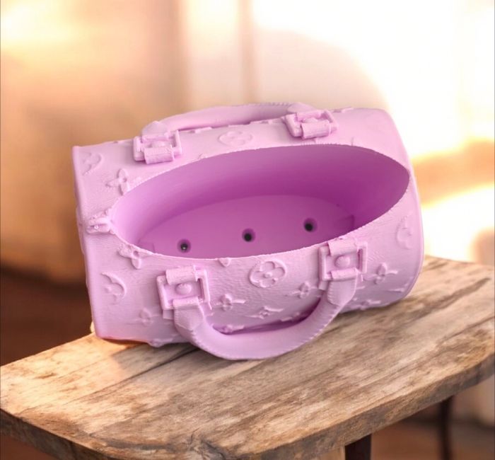 🤗 Création 3D 💥 💨 Joli Sac a Main motif avec ouverture sur le dessus , on peut y introduire ce qu'on veut a l'interieur ! Couleur Violet Clair Matière : PLA ( plastique biosource , léger et résistant ) Dimensions : 16X10,2X14 cm ! 18€