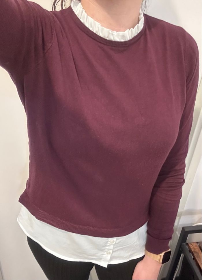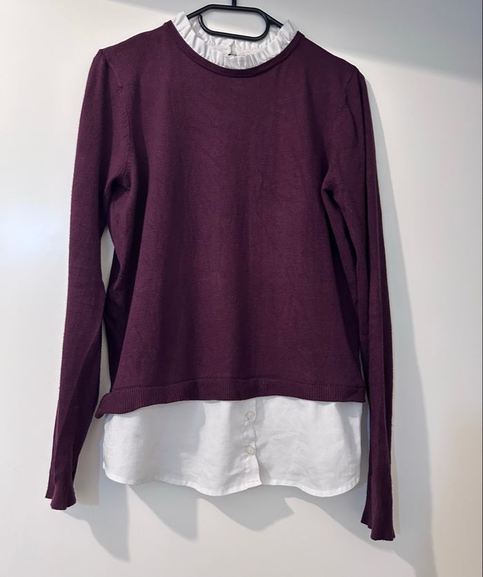 Pull bordeaux Effet chemise sur le bas et au col Taille M Marque Pimkie Très bon état Prix 7€