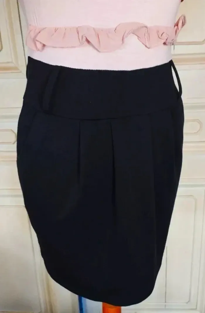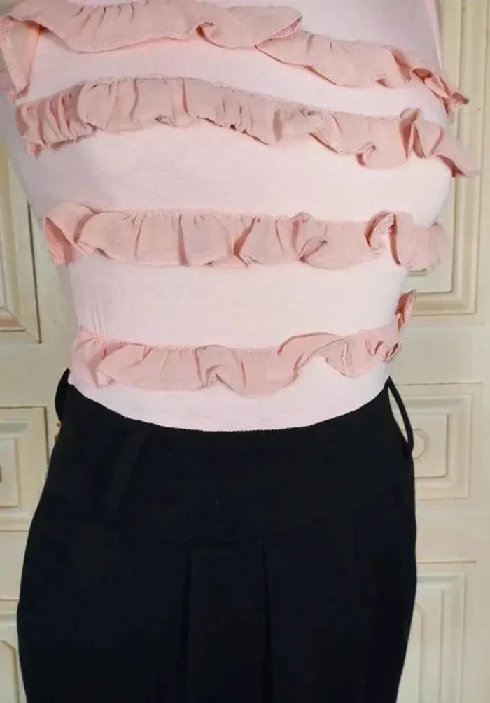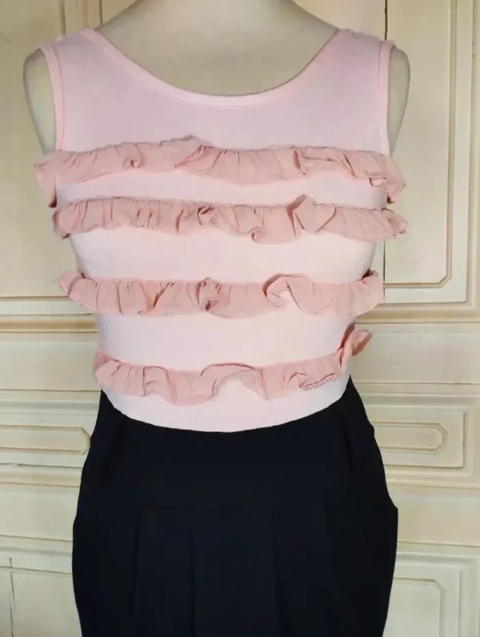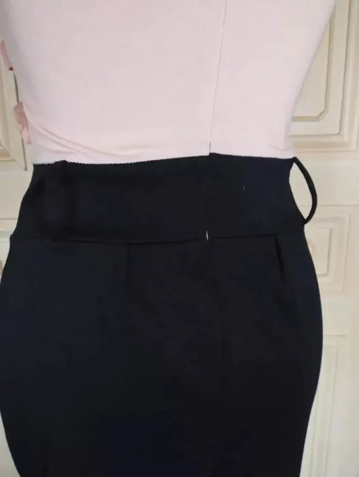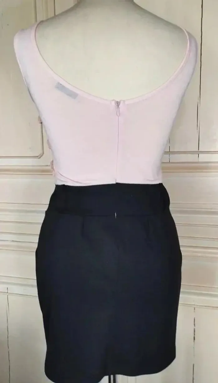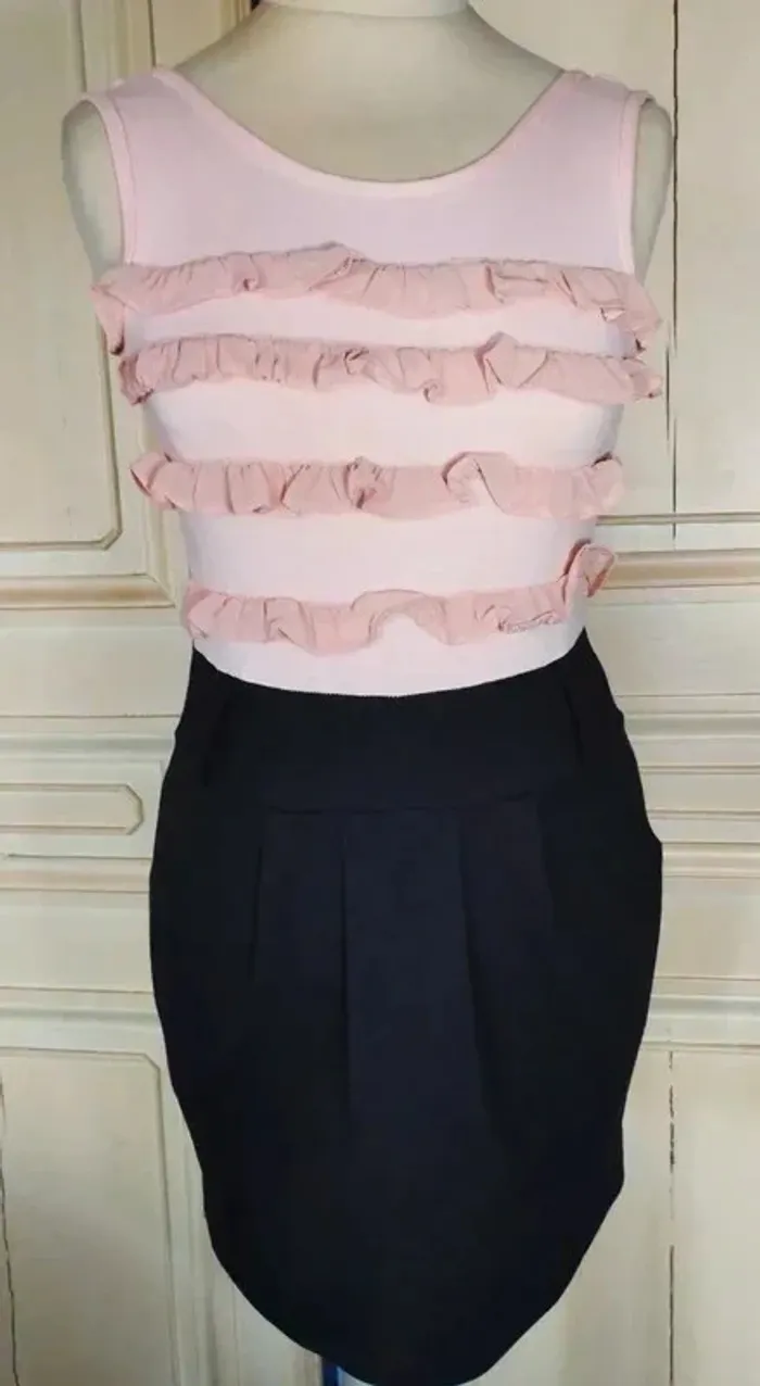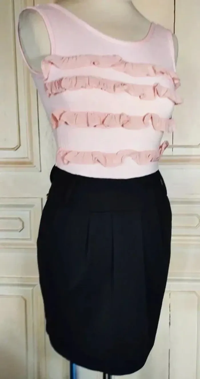 PAPRIKA ROBE 36/38 VOIR MESURES AU BAS LOOK TRENDY FEMININ COUPE CRAYON CONFORTABLE AVEC 5% D ELASTHANE EFFET TROMPE L OEIL TOP ET JUPE AMUSANT HAUT FLUIDE ET EXTENSIBLE COLORIS ROSE NUDE DECOLLETé ARRONDI DEVANT ET DOS OUVERTURE 23 CM PROFONDEUR 12 DEVANT ET 14 AU DOS DEVANT DU BUSTE A LA TAILLE HAUTE 3 VOLANTS DE MOUSSELINE ROSE NUDE VOLANTéS ET ENTORTILLés BAS DE LA ROBE COLORIS NOIR CONTRASTANT MAILLE SEMI EPAISSE EXTENSIBLE TAILLE HAUTE MARQUEE PAR DECOUPE LARGE CEINTURE 7 CM DE HAUTEUR AVEC 2 GRANDS PASSE CEINTURES DEVANT ET DOS PERMETTANT D AGREMENTER LA ROBE D UN GROS CEINTURON SOUS LA CEINTURE COUPE CRAYON RETRO REBONDI AU NIVEAU DE LA TAILLE CRéé PAR 3 PLIS PLATS DEVANT ET MINI PINCES AU DOS 2 POCHES EN BIAIS SUR LES COTés FERMETURE ZIP INVISIBLE CENTRAL AU DOS DE 24 CM AVEC ATTACHE GOUTTE D EAU ROSE NUDE POITRINE 40 A 49 CM TAILLE HAUTE 37 A 39 CM TAILLE 39 CM HANCHES 44 CM BAS 47 CM LONGUEUR 78 CM