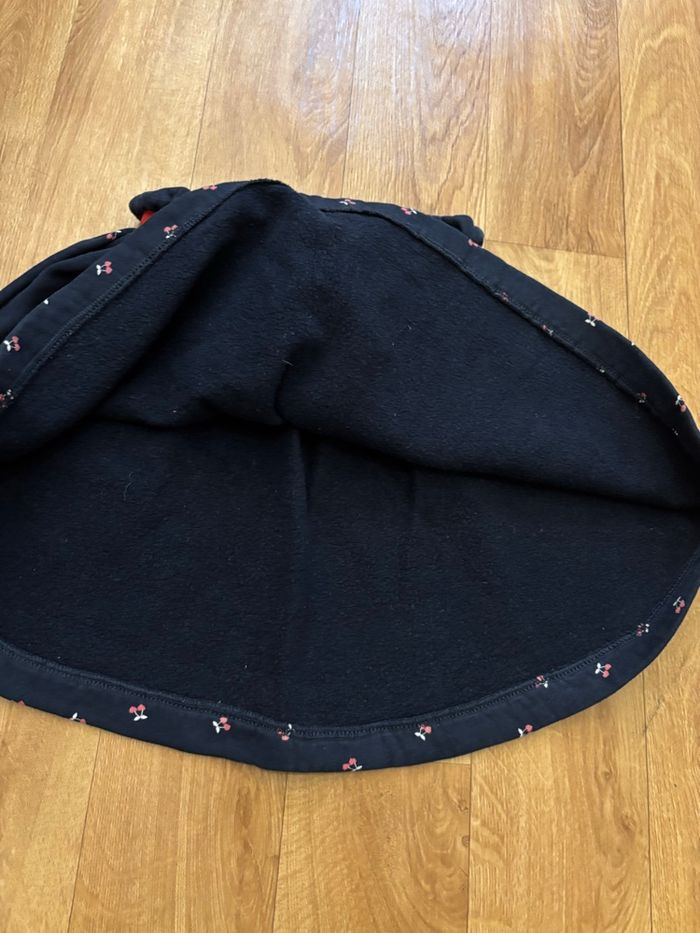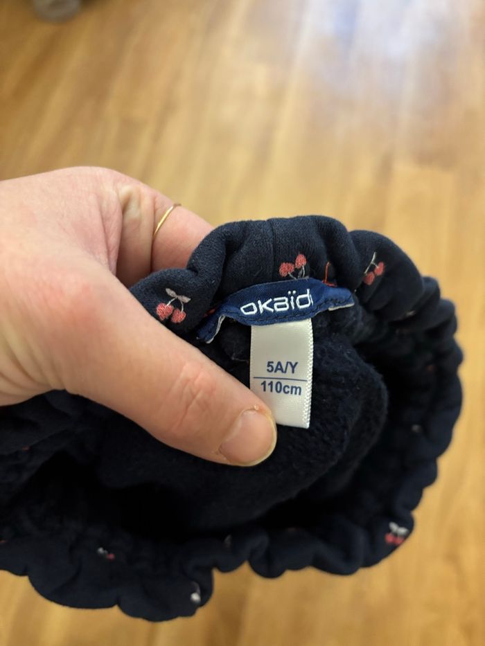 Je vends cette jolie jupe marine imprimée cerises pour fille de 5/6 ans. - Type de produit : Jupe - Marque : Okaidi - Taille : 5 ans / 110 cm - Couleur : Marine et rouge imprimé cerises - Caractéristiques : Motif cerises intérieur polaire