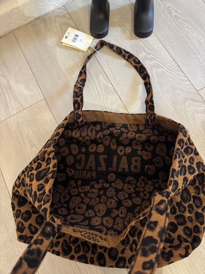Tote bag léopard balzac Paris Produit neuf; jamais servi Étiquette dessus Envoi rapide et soigné Matière qualitative, sac robuste Dimensions : 34 × 42 × 8 cm