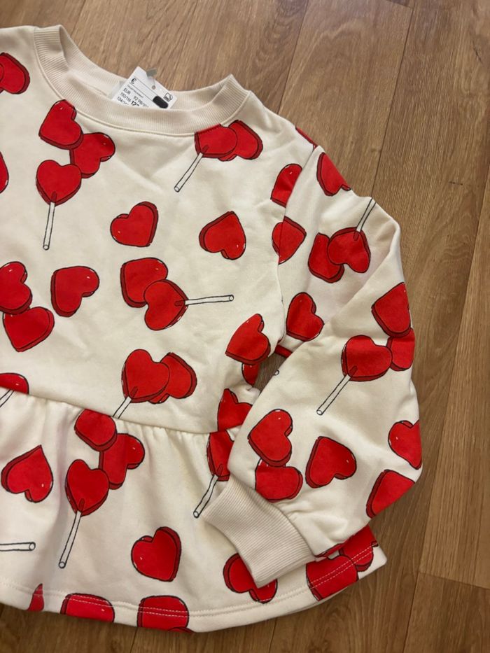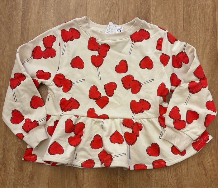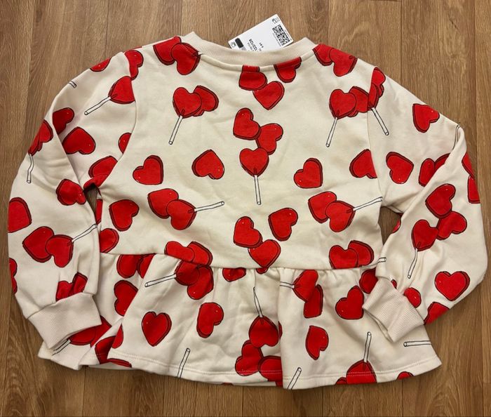 Sweat en molleton imprimé à l'intérieur doux et brossé. Modèle avec bord-côte autour de l'encolure ronde et manches longues terminées par bord-côte. Basque à la base. Coton polyester Imprimé cœurs et sucettes cœurs Neuf