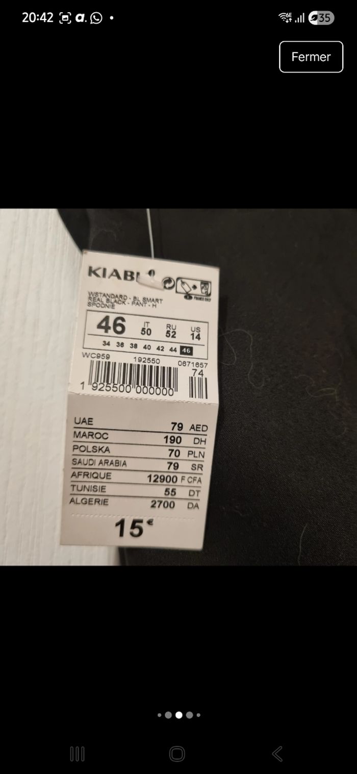 Pantalon neuf, à pince Longueur taille-> jambe : 101 cm Maison non fumeur