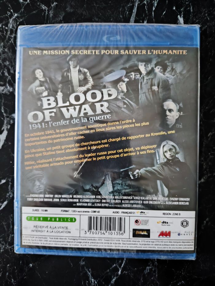Film Blood of War (2012) neuf encore sous blister. Guerre, Drame et Action de Oleksandr Berezan avec Yaroslav Gavrilyuk, Oleg Shulga, Viktor Zhdanov, Andriy Mostrenko et Roman Semysal. Plusieurs autres films (DVD et blu-ray) et séries télé disponibles sur mon dressing. Si vous avez des questions ou souhaitez plus de photos, n'hésitez pas à me demander. Prix négociable seulement si vous achetez plusieurs articles. N'hésitez pas à créer un lot et à faire une proposition raisonnable et à me demander un prix. Tag de recherche : #neboo_video #neboo_bluray #neboo_film blu ray bluray langue français française French FR