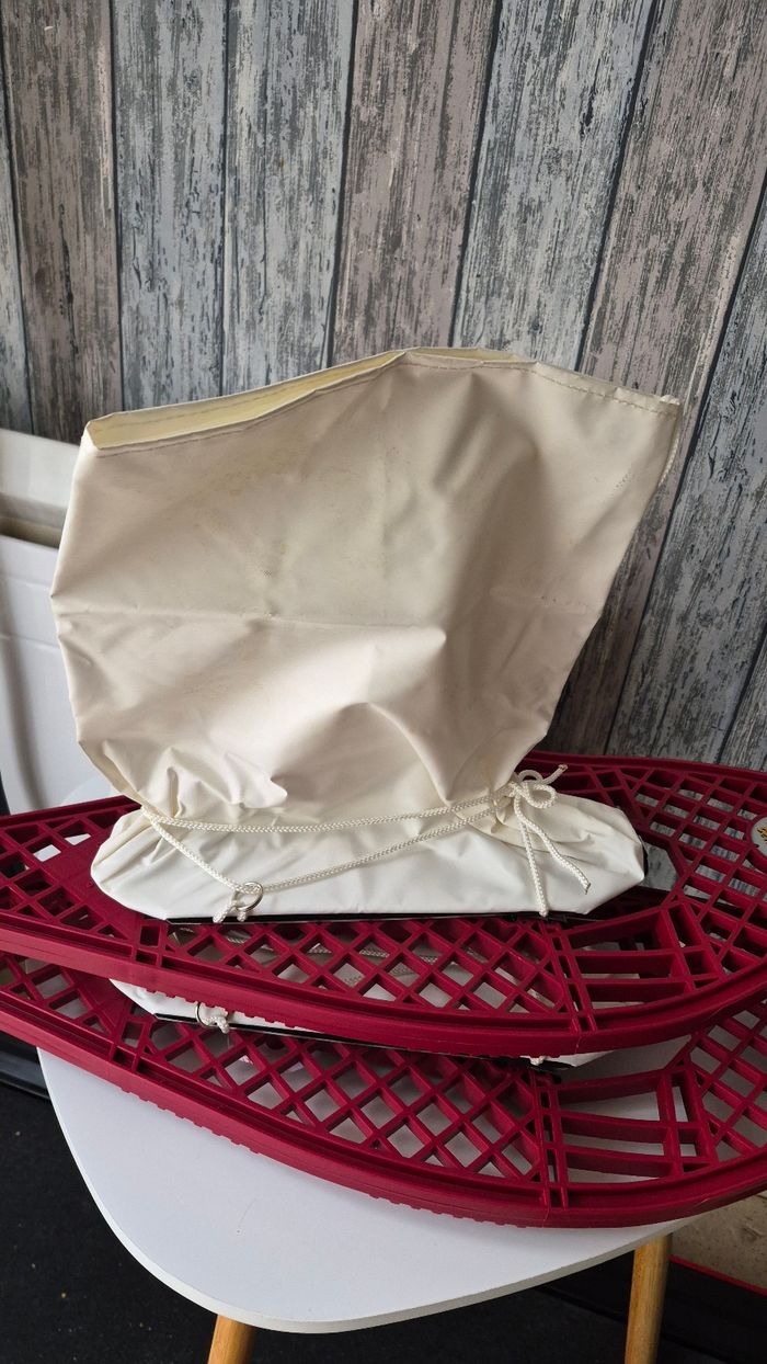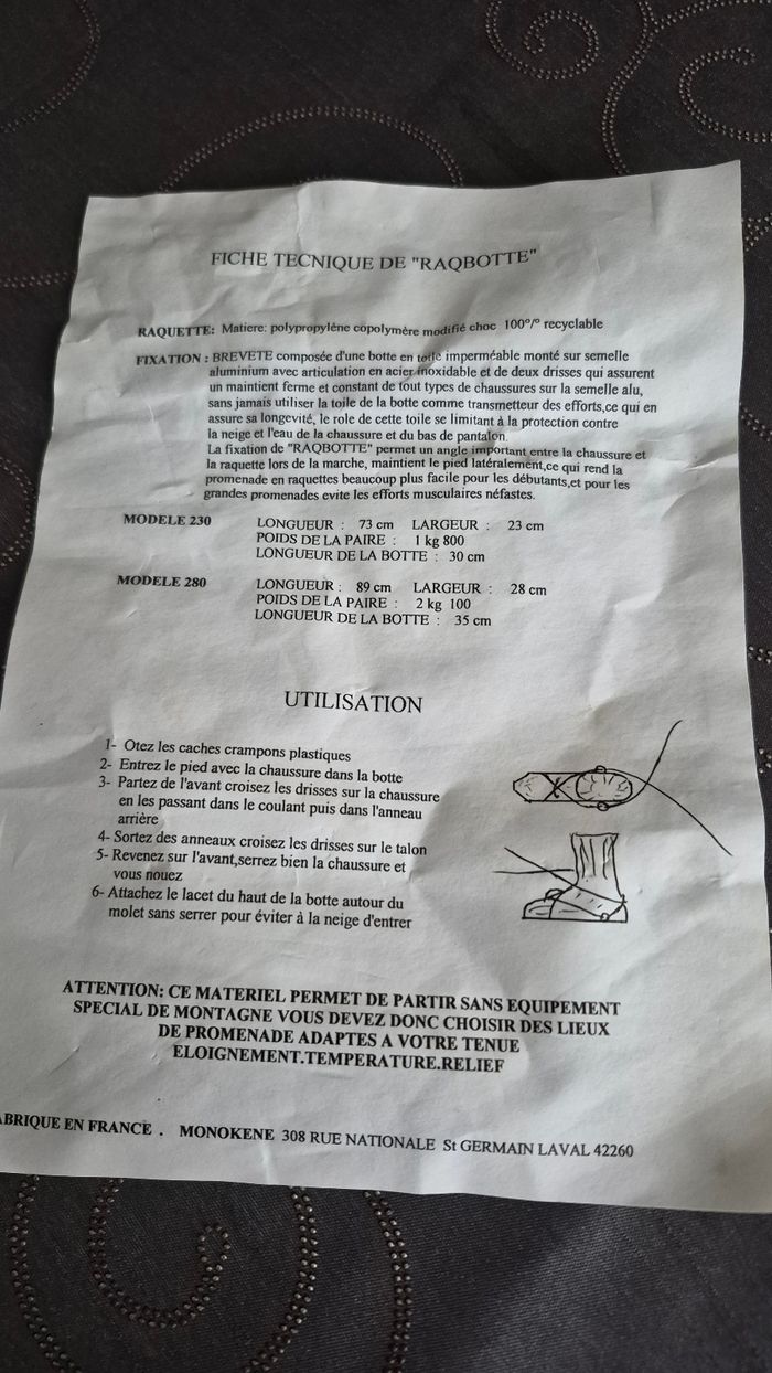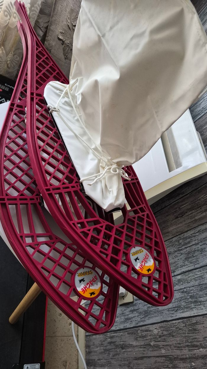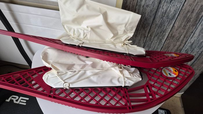 Raquettes à neige APACHE Senior – Très bon état ❄️🏔️ Paire de raquettes à neige APACHE – modèle RAQBOTTTE, conçues pour la randonnée hivernale et les balades sur neige. Fabrication française avec une conception robuste et confortable, idéale pour une excellente stabilité à la marche. ✔️ Marque : APACHE ✔️ Modèle : RAQBOTTTE – Senior ✔️ Matière : polypropylène copolymère modifié choc, 100 % recyclable ✔️ Fixation brevetée avec botte en toile imperméable montée sur semelle aluminium ✔️ Articulations en acier inoxydable ✔️ Maintien latéral optimal, confortable et sécurisé ✔️ Griffes métalliques pour une très bonne accroche ✔️ Housses incluses 📏 Dimensions (modèle 280) • Longueur : 89 cm • Largeur : 28 cm • Poids de la paire : 2,1 kg • Longueur de la botte : 35 cm D’après la fiche technique et la longueur de la botte : 35 cm, la pointure correspond à environ du 38 au 45 👞❄️ Idéales pour les sorties neige, randonnées et promenades hivernales, adaptées aux débutants comme aux utilisateurs réguliers
