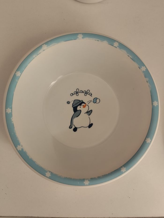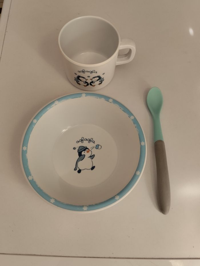 Lot assiette tasse cuillère en plastique Dessin pingouin