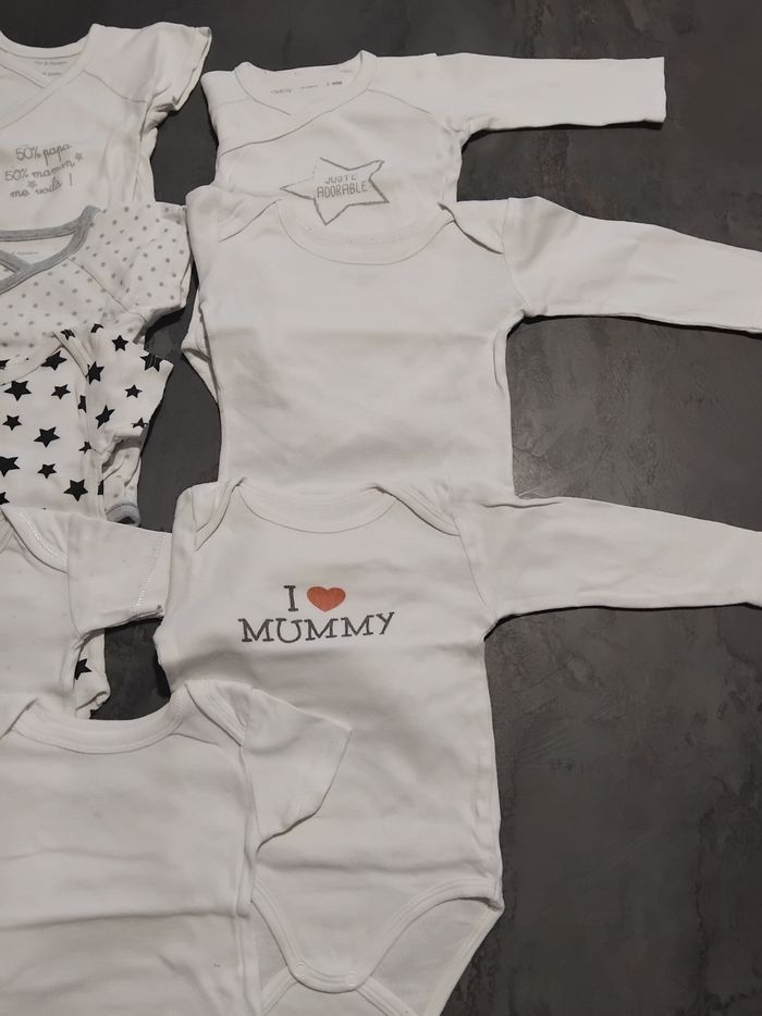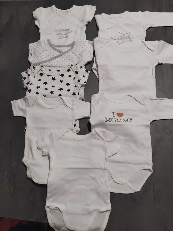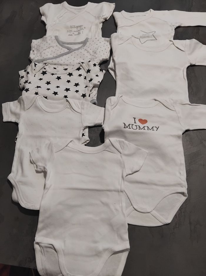 Lot de 8 bodies mixte. Manches courtes et longues . De la taille 6 mois à 12 mois