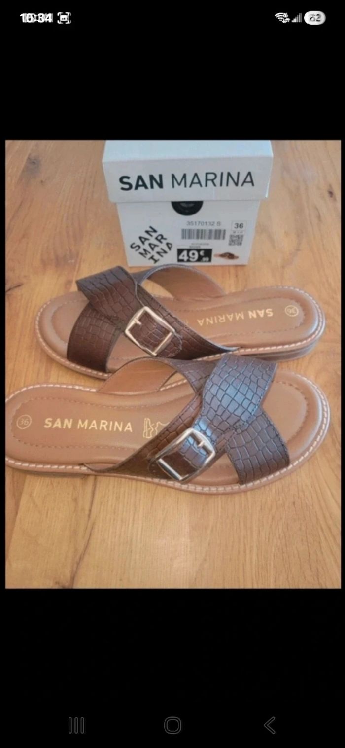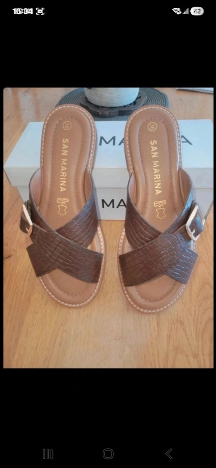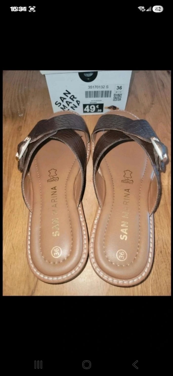Sandales San Marina En cuir marron avec boucle dorée Taille 36 Neuf avec boîte