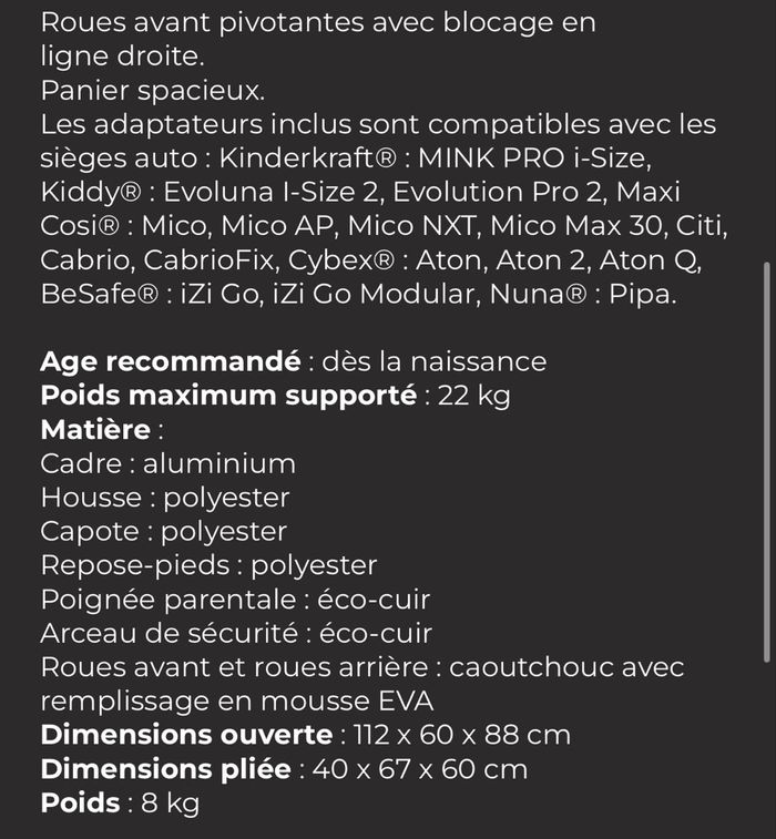 Jamais utilisé Poussette kinderkraft Newly 2 en 1 avec nacelle qui se transforme en assise. Pliable avec siège et extrêmement léger. 2 directions pour les poussettes. Siège 2 en 1 qui se transforme facilement en nacelle et en poussette orientée face ou dos à la route. Barrière de sécurité amovible des 2 côtés. Accessoires : couvre jambes N’hésitez pas si vous voulez plus de photos.