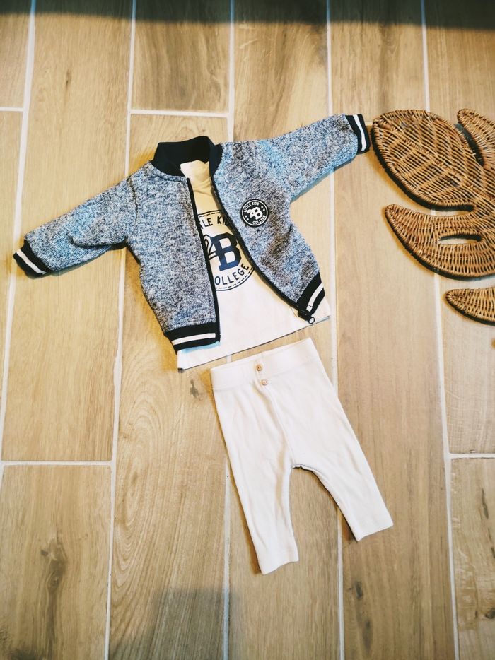 🎒Little kids College - Ensemble 3 pieces Gilet zippé t-shirt et bas - Taille 3 mois - photo numéro 1