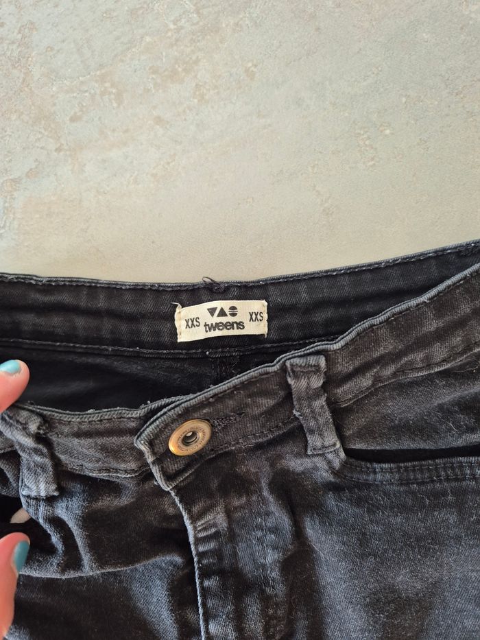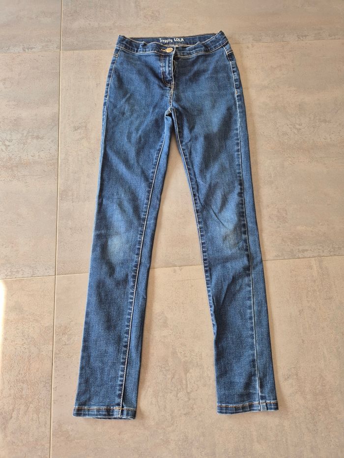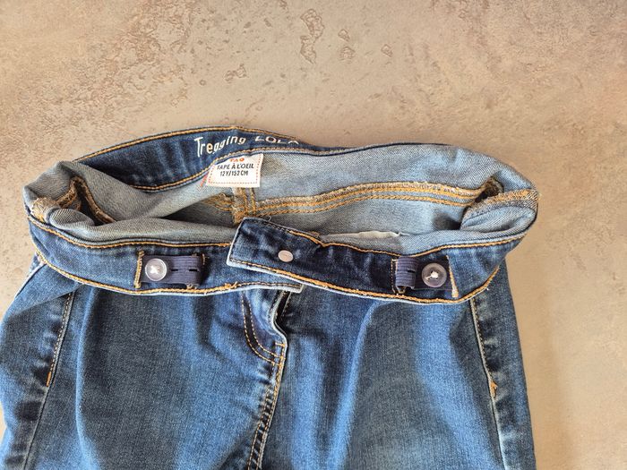 TBE taille ajustable pour les 2. Le jean bleu est en 12 ans et le jean noir est en xxs soit 12 13 ans. Marque Tape à l'œil