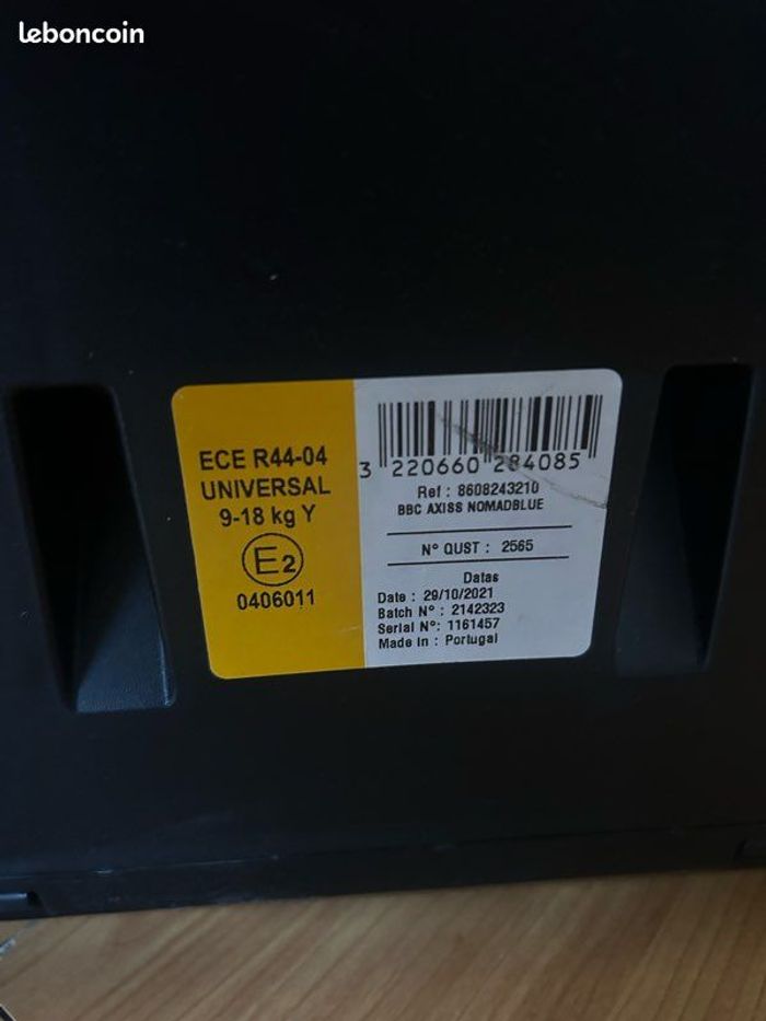 Siège auto Bébé Confort Axiss – Groupe 1auto pivotant en très bon état. 9 kg à 18kg ( 9 mois à 4 ans) Aucun choc. Très pratique. Sans isofix Quelque traces d’usure au niveau des jambes voir logo en photo. Utilisé pour un seul enfant. On vient de tout nettoyer. Aix en provence nord. Siège auto pivotant et inclinable, idéal pour bébés et jeunes enfants. Âge d’utilisation : de 9 mois à environ 4 ans Poids de l’enfant : de 9 à 18 kg Orientation : face à la route Installation : avec la ceinture de sécurité du véhicule et tendeur intégré Système pivotant : rotation à 90° pour faciliter l’installation et la sortie de l’enfant Inclinable : 8 positions d’inclinaison pour plus de confort Réglage pratique : ajustement simultané du harnais et de l’appuie-tête à une seule main Poids du siège : 11,75 kg Couleur : Nomad Blue Siège très sûr, confortable et pratique au quotidien, idéal pour faciliter l’installation de l’enfant en voiture.