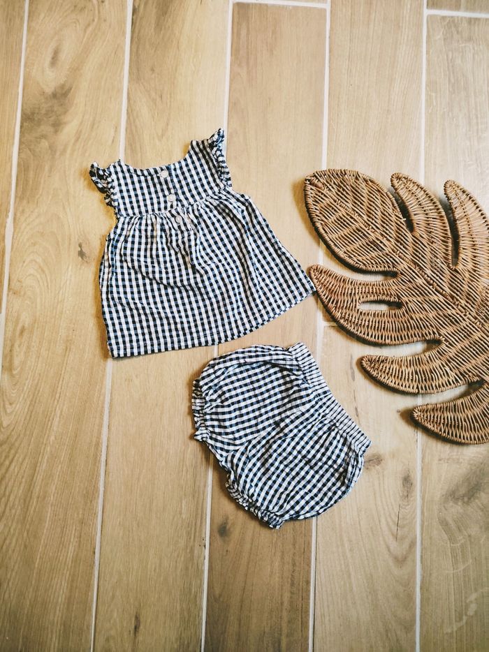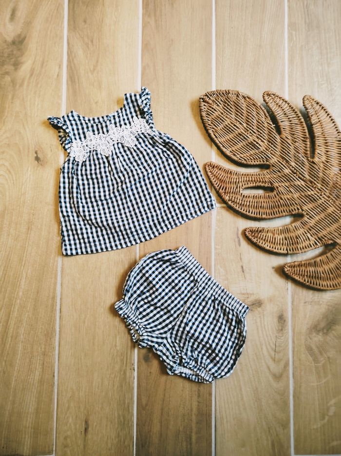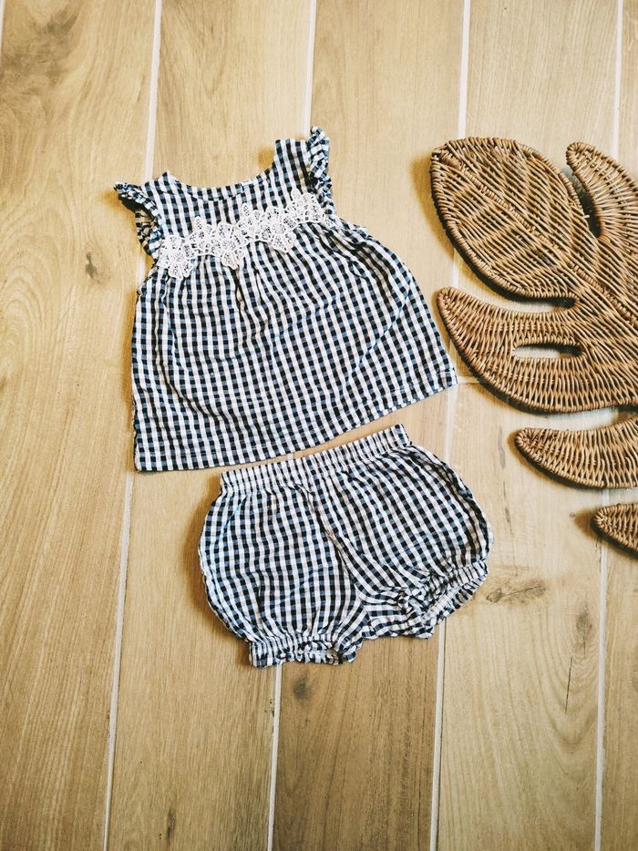 👶Ensemble t-shirt/haut et bloomer vichy noir et blanc - Taille 6 mois - photo numéro 1