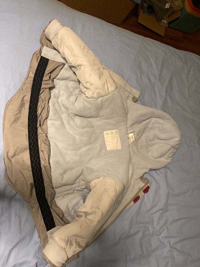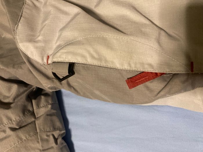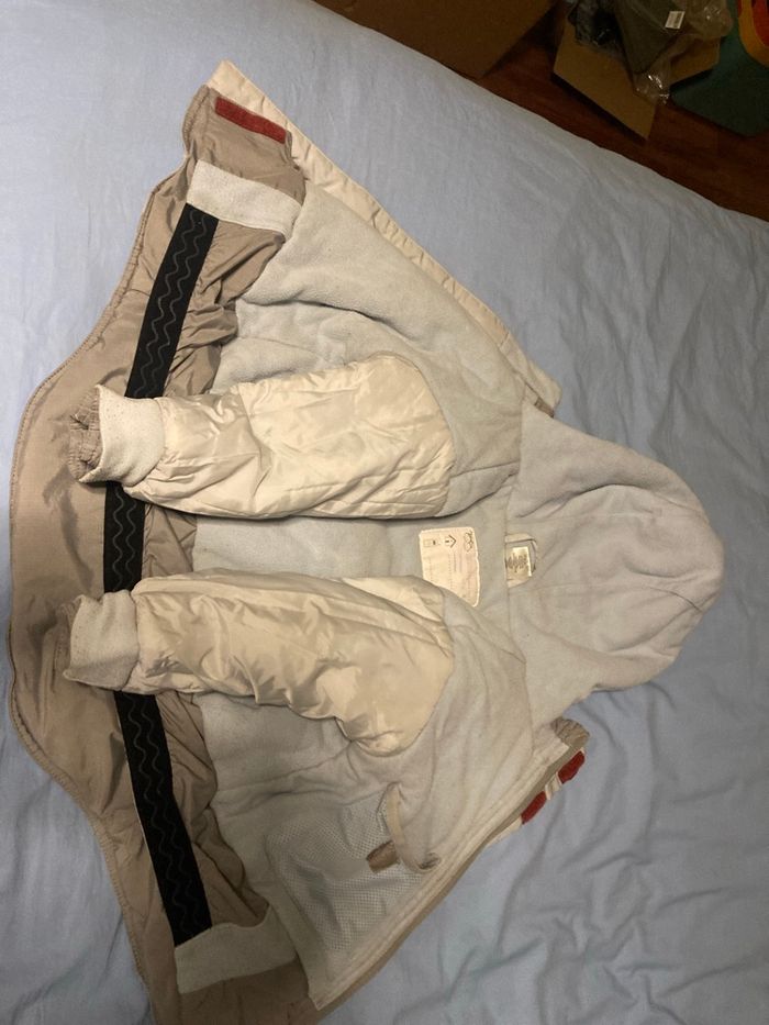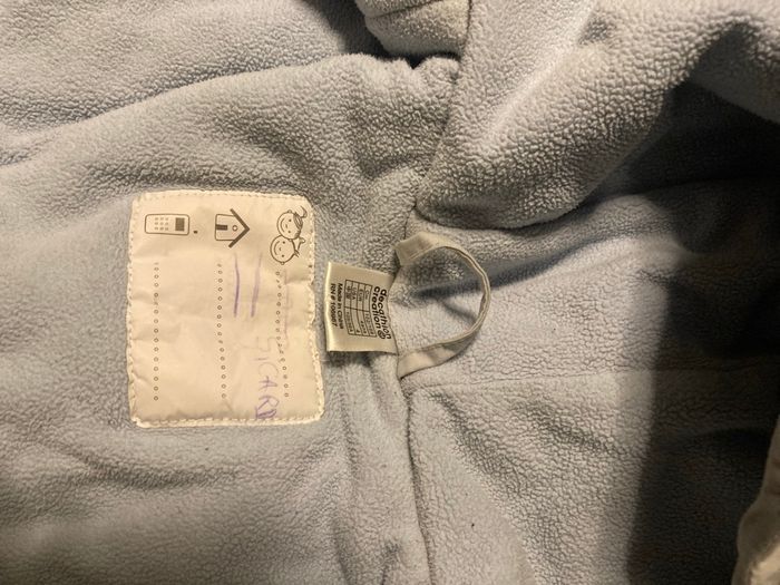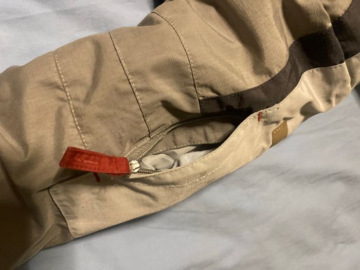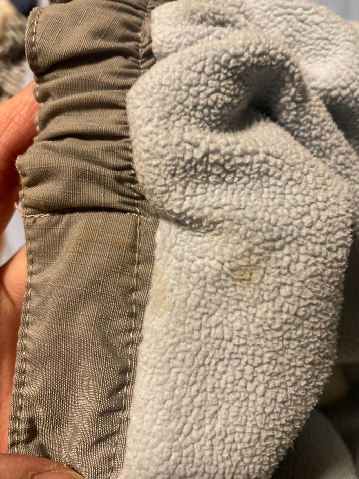 Blouson de ski dans les tons gris pour garçon taille 4 ans. Petite poche sur la manche gauche. Un crochet sur la poche extérieure droite pour accrocher des clés. Une poche intérieure à gauche. Présence de 2 tâches à l’intérieur de la capuche.