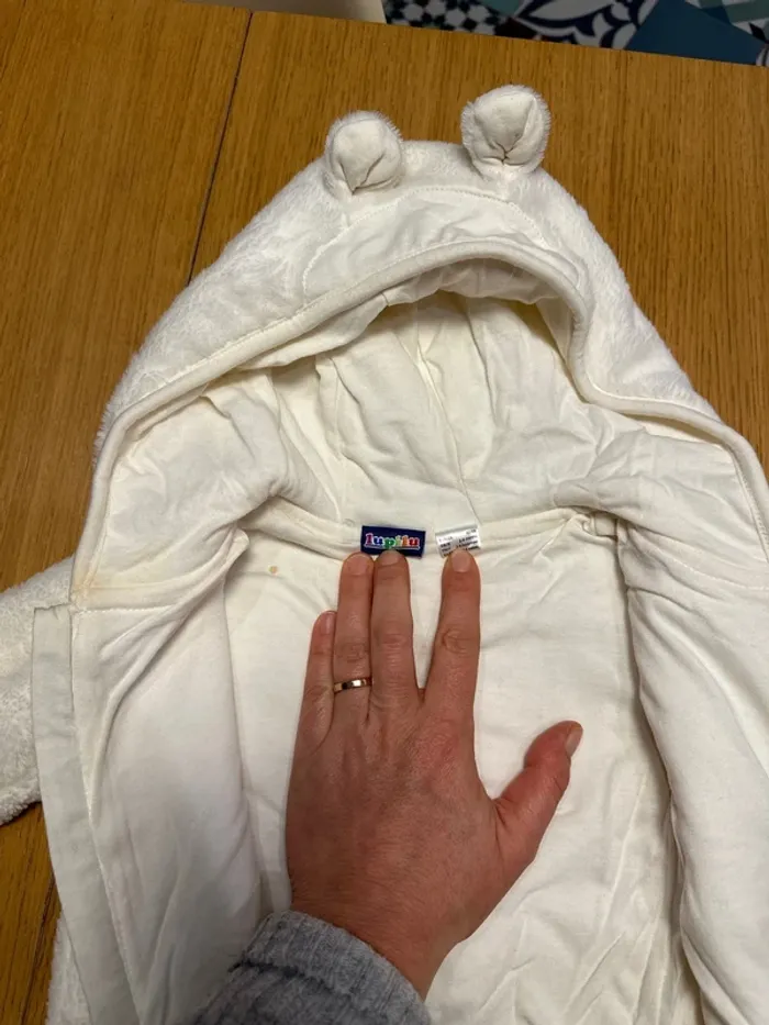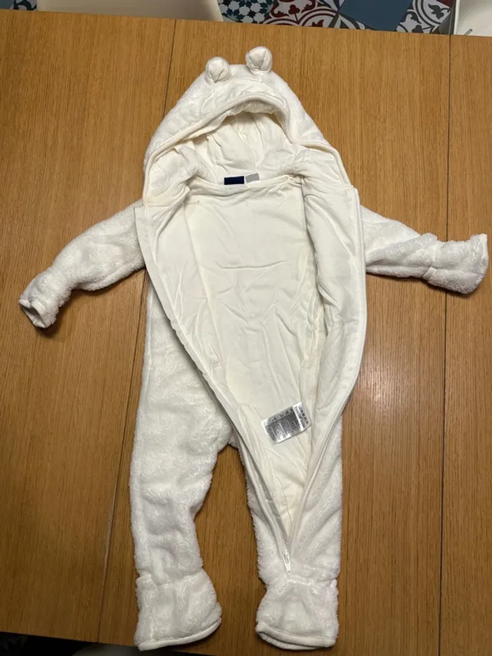 Combinaison chaude blanche lupilu 2-6 mois Porté très peu. Manches et pieds couvert ou ouvert, modulable. Petites oreilles d’ourse très mignon
