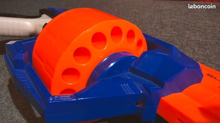 Blaster fusil à pompe fourni avec 15 fléchettes Nerf. Facile à utiliser les fléchettes sont dans un barillet rotatif. Livraison possible. pistolet nerf, blaster nerf.