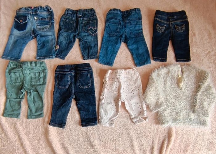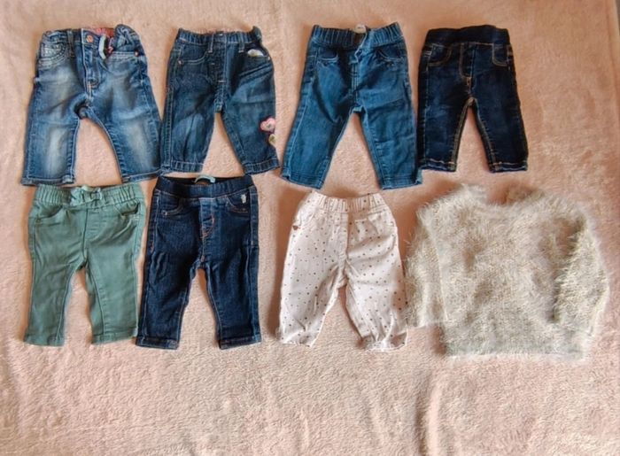 💮Lot de 7 pantalons 💮1 pull 💮3 mois 💮Différente marques (Obaïbi, H&M, Du Pareil au Même, la Redoute, TAO, Kiabi) 💮Très bon état 💮 Possibilité de séparer le lot (1,50€ le pantalon, 2€ le pull)