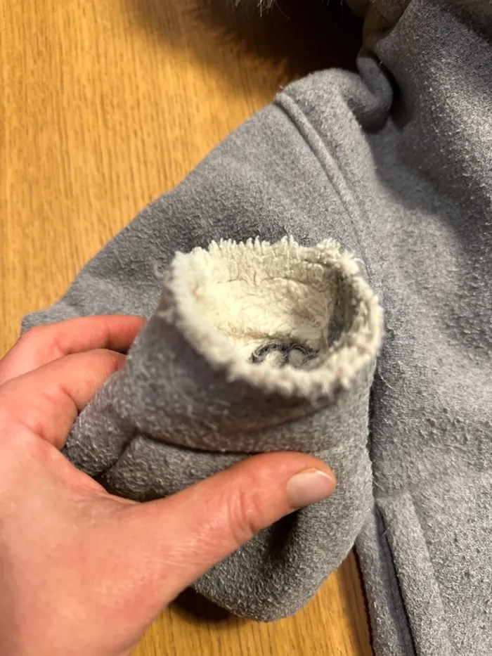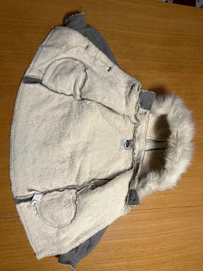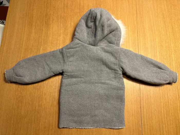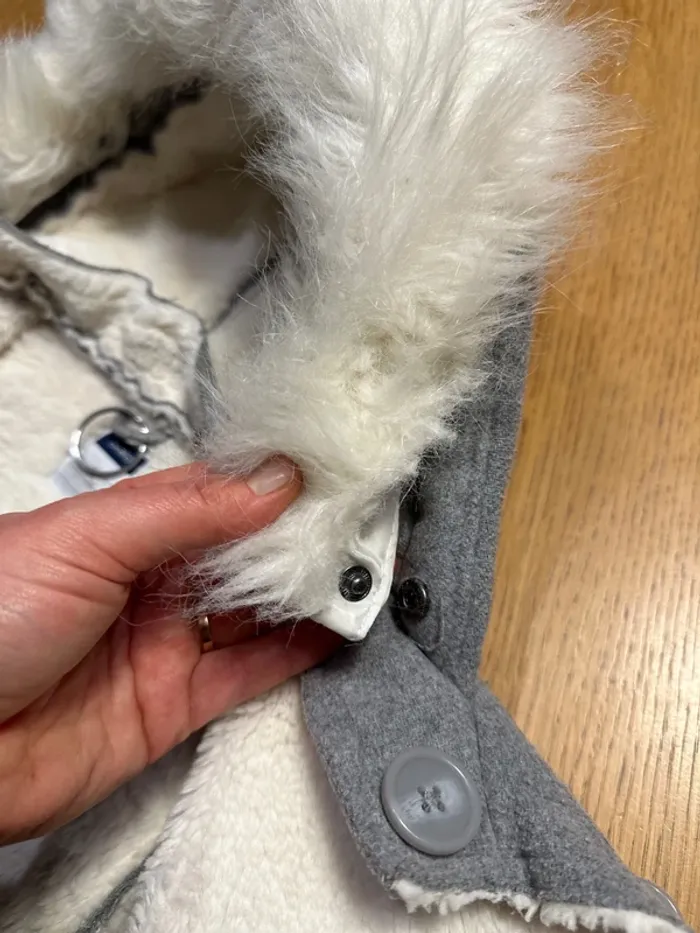 Veste 5ans tout doux tout chaud pour passer l’hiver. Okaidi gris avec fourrure blanche intérieure Fourrure de capuche declipsable
