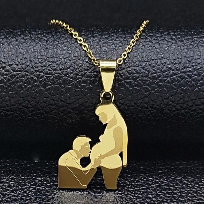 Collier Future Maman – Pendentif Famille en Acier Inoxydable Doré