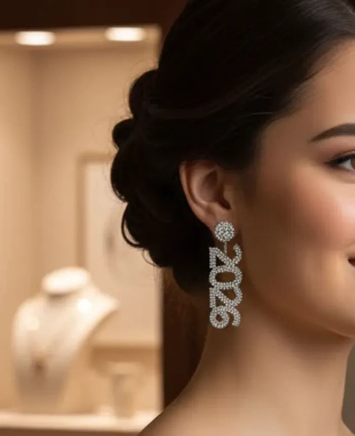 Boucles d’Oreilles Cristal “2026” – Édition Glamour Spéciale Nouvel An