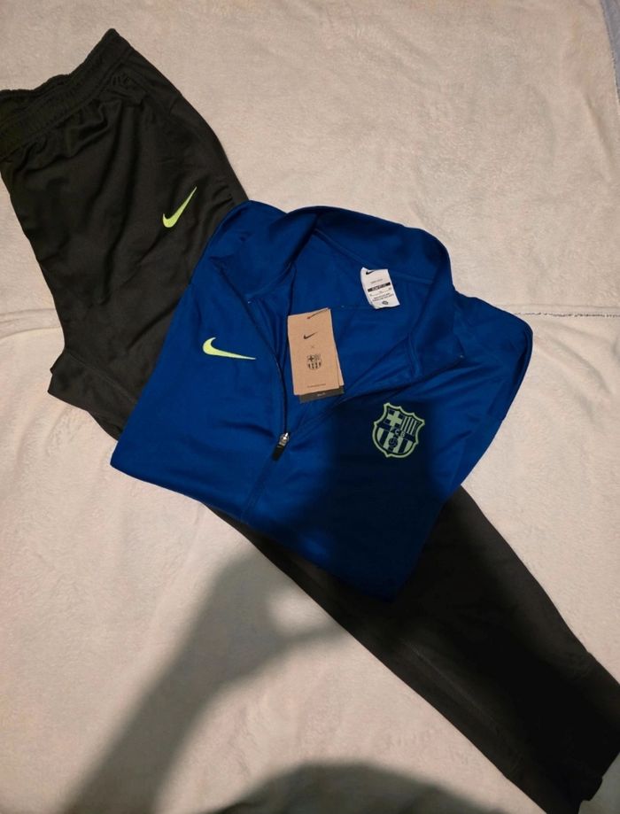 Survêtement Nike × FC Barcelona complet, état neuf Jamais porté étiquettes encore présentes. Version avec logos fluo, très stylée et recherchée. Taille : xl Valeur bien supérieure en boutique. Prix 70 e