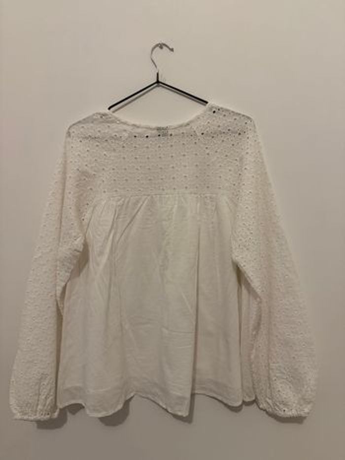 Haut blouse blanche à motifs textures sur les manches  - photo numéro 1