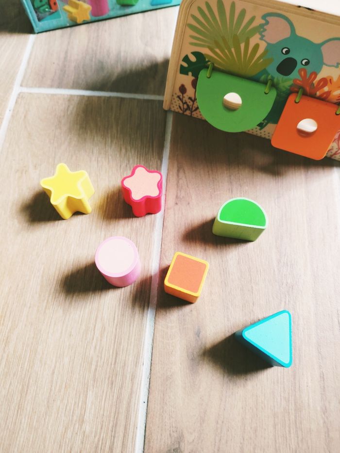 🌟 Jeu d'éveil - Boîte à formes 3 en 1 Multi Boita en bois marque Djeco JB1931 🎀Convient dès l'âge de 18 mois 🎀Cette boîte à formes ludique comprend 3 activités. ✨8 pièces de formes et couleurs différentes qui pourront être encastrer de 3 manières : 🫳Soulever un couvercle 🤏Glisser dans les bons compartiments 🫴Ouvrir et mettre dans les fenêtres 🎀Votre enfant pourra récupérer les formes en rentrant sa main entre les gros élastiques 🎀Objectifs ▶️Apprendre à reconnaître et trier les formes et couleurs ▶️Coordination main/oeil ▶️Dextérité ▶️Motricité fine 🎀Peut comporter quelques petites traces d'usures ❇️N'hésitez pas à créer un lot pour économiser sur les frais de port❇️ Premier âge, Jouet bébé, Jouet d'activité, Jouet ludique, Jouet eveil, Mémorisation, Memoire, aptitude, motricité, Adresse, Montessori, Bois, Jeu adresse, apprentissage, dextérité, sensorielle, educatif