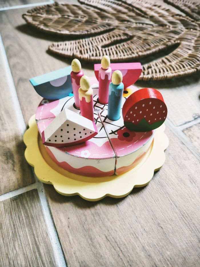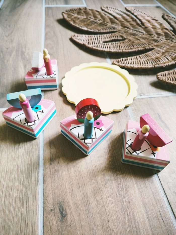 🎂Jeu d'imitation - Dinette en bois gâteau d'anniversaire sur plateau