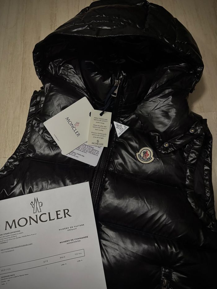 Moncler Maya sans manches Etat : Excellent (10/10), neuve Taille : 2 (équivaut à du S) 📏 Capuche détachable grâce à des boutons Jamais portée du à une erreur de taille. Sur demande, je peux fournir : •La facture