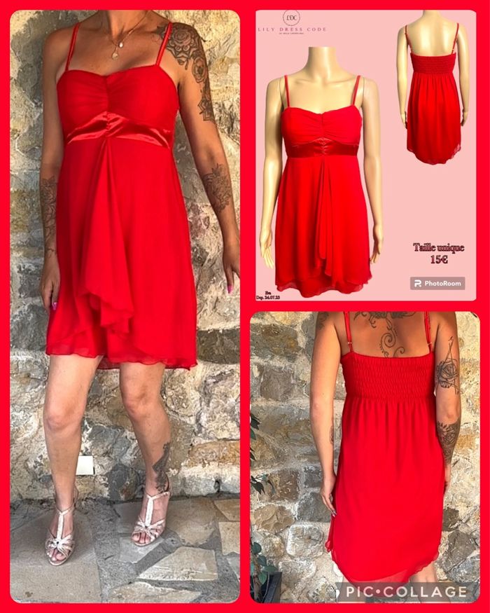 Robe fluide rouge à fines bretelles, très féminine et élégante. Le haut est joliment froncé au niveau de la poitrine avec une bande marquée sous la poitrine qui met en valeur le buste. Le dos est entièrement smocké, ce qui apporte un excellent maintien et un confort optimal. La jupe est fluide avec un tombé léger et aérien, parfaite pour l’été, une soirée ou une occasion spéciale. Une robe flatteuse, agréable à porter et facile à accessoiriser. ⸻ Taille : Taille unique Marque : MARQUE NON PRÉCISÉE Coupe : Fluide, cintrée sous poitrine, bretelles fines, dos smocké Couleur : Rouge vif Imprimé : Uni Prix de base : 15 € Prix après remise -70% : 4,50 € ⸻ Idée look / association : À porter avec des sandales à talons nude, dorées ou argentées pour une tenue chic. Parfaite également avec une veste légère ou un petit blazer pour les soirées d’été. ⸻ 🎥 Vidéo portée disponible sur TikTok : https://vm.tiktok.com/ZNRSmvDgh/ ⸻ Hashtags : #robe #roberouge #robeete #lookfemme #soldes #bonplan #lilydresscode #tailleunique #tiktokmode ❤️