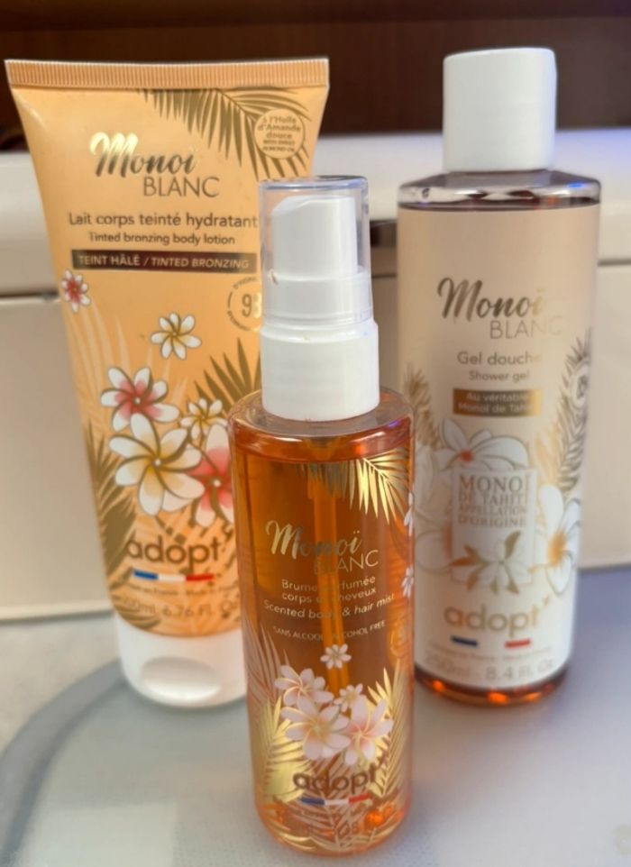 Lot adopt monoï Neuf -Lait corps teinté, hydratant Brume, parfumée, corps et cheveux -gel, douche Neuf jamais utilisé Prix ferme