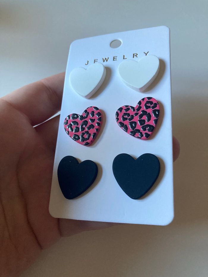 Lot de 3 boucles d’oreilles NEUVES avec étiquette forme de cœurs couleurs - photo numéro 1